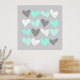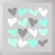 Cute mint grey love hearts poster