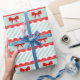 Cute Mint Red Bows Stars Striped Christmas Pattern Wrapping Paper