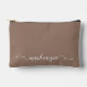 Cute Mocha White Script Typography Monogram Accessory Pouch