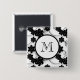 Cute Mod Black Flowers Pattern, Your Initial 15 Cm Square Badge