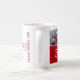 Cute and trendy coffee mug for three best friends with three horizontal photos that can be customised, the letters BFF on red rectangles, two customisable names, and the text "Best Friends Forever" -- which can also be customised, if you wish (for instance, to read "Best. Friends. Ever.").