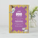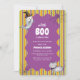 A little boo is almost due! baby shower theme, halloween baby shower, design feature cute ghost in witch hat, cute poem cat with bow tie and spider web in the wavy frame in the colourful halloween orange, purple, green stripe background. you can customise your own colour and text. modern fun fall, autumn october baby shower, this is gender neutral design perfect for mum-to-be, baby boy and girl baby shower.