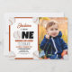 Get ready for a fun-filled baseball extravaganza with our Cute Modern Baseball Sports Photo 1st Birthday Invitation. This adorable invitation showcases a vibrant baseball illustration, playful fonts, an orange & white colour palette and a personalised photo of your baby that will captivate both kids and parents. The modern typography adds a trendy touch, while the layout combines essential details with thematic charm. Perfect for your little slugger's first birthday, this high-quality invitation sets the stage for an unforgettable celebration. Don't miss out on the opportunity to create lasting memories.