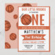Cute Modern Basketball Ribbon Kids 1st Birthday Invitation