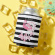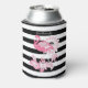Cute Modern Black and White Stripe Pink Flamingo Can Cooler