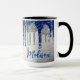 Cute modern Blue Glitter Drips monogram Coffee mug. A girly and trendy glittery modern mug. It makes the perfect sweet 16 birthday, wedding, bridal shower, anniversary, baby shower or bachelorette party gift for someone that loves glam luxury and chic styles. Whether for valentines day, Christmas or any occasion in general this cute coffee mug will make a great gift idea for any girl or woman who loves modern sparkly elegance.