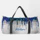 Cute modern Blue Glitter Drips monogram Duffle Bag. To make it extra special, it is also monogrammed and personalised with name or initials or any text you like, click the "customise further" link and use the design tool to modify the design if you like.