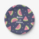 Cute Modern Blue Green Watercolor Watermelon Fruit Paper Plates