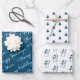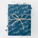 Cute Modern Blue Snowman Christmas Trees Script Wrapping Paper Sheet