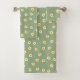 Cute Modern Daisies Pattern Green Bath Towel Set