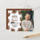 Presenting the charming Cute Modern Football Budget Photo Birthday Invitation! This delightful invitation blends the love for American football with a contemporary and playful vibe. Its brown colour and adorable illustration of a little rookie football player instantly captivate kids. The typography, featuring a mix of playful fonts and a personalised photo of your baby adds an element of fun and excitement. Ideal for sports-loving kids, this invitation exudes a modern and cute appeal, creating an unforgettable and joyous birthday celebration centred around their favourite sport. Get ready for a sports-themed extravaganza full of laughter and cheer! Don't miss out on this American football theme design to start your little rookie's birthday party plans without a pinch to your pocket.