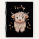 Personalised first name modern cute watercolor highland cow notebook on black background. Perfect as a gift for birthdays, special occasions or everyday use. Put your thoughts and ideas, your dreams in this cute notebook, perfect for journalling, school or home use.