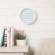 NewParkLane - Simple but cute, personalised clock, with a modern pattern of broad pastel / mint green and lavender stripes. Add your name for a personalised design.