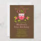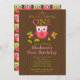 Start you first birthday party off right with our adorable pink & red owl kids birthday party invitations. Perfect invitation for you 1st birthday party celebration! Our sweet owl invitations features a cute little owl sitting on a green leaf tree branch with flowers and is set on a stylish brown background. Our owl girls birthday party invitation features an unique owl pattern background. Visit our shop for matching thank you note cards, birthday stickers, thank you stickers and postage stamps. © Petit Tatti