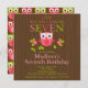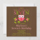 Start your Seventh birthday party off right with our adorable pink & red owl kids birthday party invitations. Perfect invitation for your 7th birthday party celebration! Our sweet owl invitations features a cute little owl sitting on a green leaf tree branch with flowers and is set on a stylish brown background. Our owl girls birthday party invitation features an unique owl pattern background. Visit our shop for matching thank you note cards, birthday stickers, thank you stickers and postage stamps. © Petit Tatti