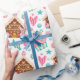 Cute Modern Pink Blue Watercolor Christmas Treats Wrapping Paper