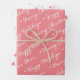 Cute Modern Pink Snowman Christmas Trees Script Wrapping Paper Sheet