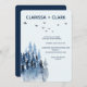 Cute modern watercolor mountain landscape destination wedding invitation.