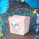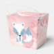 Two adorable foxes set against a pink watercolor background makes an ideal baby shower favour box.