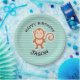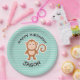 Celebrate a "Happy Birthday" with a cute monkey illustration for a children's party animal birthday or jungle theme party, customised with a name for any event.