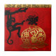 In a square are 3 monkeys, one hanging from a tree seems to kick in a little monkey perched on a golden shape inside of which is the third monkey. Behind the scene there is a red background on which decorative and ornate letters form the words: "mon key year". Design on square ceramic tile. Matching greeting card, craft products, clothing, home products and more... Perfect for Chinese New Year of the Monkey or Birthday (people born in Monkey Year).--------------"The Monkey (猴) is the ninth of the 12-year cycle of animals which appear in the Chinese zodiac related to the Chinese calendar. The Year of the Monkey is associated with the Earthly Branch symbol 申. " - Wikipedia 8 February 2016 – 27 January 2017: Fire Monkey Persons born within these date ranges can be said to have been born in the Year of the Monkey, while also bearing its governing elemental sign=