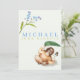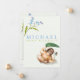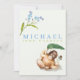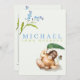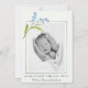 Our cute photo birth announcement card introduces your beautiful baby boy with his name on the front with soft blue florals and a cute monkey. Customise the back with a newborn photo and script text to feature your baby's important birth information, and parent names. The photo is framed by a soft blue frame topped with watercolor blue, purple and green flowers.