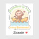 A doodle of a cute monkey riding a banana boat. The funny caption reads "Summer Is For Going Bananas!"