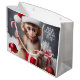 The image showcases a cute monkey with a red Santa hat, seated amidst an artificial snowy landscape. The festive ambiance is further enhanced by the presence of two gift boxes and a pair of candy canes in the scene. The monkey is holding 2 candy canes, in its hands, creating a playful and joyful vibe.