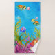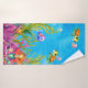 Cute under-the-sea beach towel featuring jellyfish, starfish, sea turtles, and dolphins. Perfect for a nautical ocean-themed girl's bathroom.