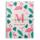 Cute Monogram Tropical Leaves Hot Pink Flamingo Notebook