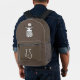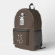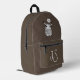 Chocolate brown neutral colour backpack with cute anime monster cartoon and cool customisable monogram initials. Perfect for school or college student. Minimalist, cool and sophisticated.