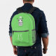 Slime green neutral colour backpack with cute anime monster cartoon and cool customisable monogram initials. Perfect for school or college student. Minimalist, cool and sophisticated.