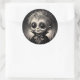 Here's a fun sticker with a creepy little figure, maybe a baby vampire, with huge eyes and pointy teeth in a circular frame. The illustration looks like an antique print from an old horror novel, but with the big eyes. It's a fun sticker to decorate a gift, card or anything else you like putting stickers on. It's great for someone who likes horror, gothic styles or old antiquarian. This is also a fun sticker for Halloween.