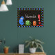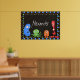 Fully customisable awesome monster gear! Design features deep brown background with brightly coloured blue, green, orange and pink monster figures along with your totally personalised information. It's easy and fun!