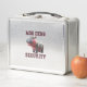 This is a standard metal lunchbox that appears to work just fine. We designed this box ourselves with an uploaded photo and custom text on the front and back. It looks absolutely beautiful except the front of the lunchbox is not centered like it shows in the photo. The print borders don't align with the inset flat part of the box where the preview photo online showed it perfectly centered in there. The back looks nice and centered though.