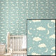Cute Moon Stars Clouds on Soft Green Wallpaper