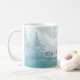 Watercolor holiday illustration features cute moose with winter scene background. Personalise with customisable text in modern brown font