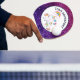 Ping pong paddle with cute mother and baby unicorns with fancy colourful manes and tail. The baby unicorn laying down beside her, with a green pacifier in its mouth. A colourful rainbow with fluffy clouds, and some stars and heart decorate this sweet and adorable design. A bold pink outline surrounding the image gives it a child-like doodle vibe. The background contains an image of faux-sparkly-glitter, in pink and purple.
