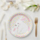 NewParkLane - Paper Plates, with a mother and baby bunny, against a pink, sage green and mustard yellow floral background.