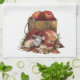 This kitchen towel has a cute mouse and a basket of apples. The graphic has a watercolor effect. It is of a bucket of apples with some apples spilling out and an apple core on the ground. There is a cute mouse with a very full stomach, taking a nap beside the apple core. This mug with a great gift for anyone with a country themed home, or and apple or mouse themed kitchen.