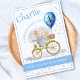 Cute Mouse Animal Bicycle Boy 1st Birthday Party Invitation - Simple, modern, and fun children's book illustration style Birthday invitation. Personalise with name, age, and party details.
