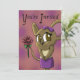 A young mouse does a cute pose while holding a rose with her tail. A cute invitation for special girls having a day to celebrate their birth.