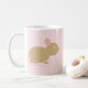 Sweet little mouse on light pink stripes, a cute cartoon picture. This pretty mouse is a light brown - beige colour.
