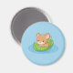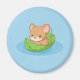Cute Mouse in a Leaf Boat Blue Magnet