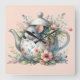 This charming design features an adorable mouse peeking out from a delicately patterned floral teapot, surrounded by lush botanical accents and pastel blossoms. The illustration blends a whimsical animal artwork style with soft watercolor floral design, evoking a warm spring tea party theme. With subtle vintage cottagecore decor elements and shabby chic aesthetic touches like twine and gentle greenery, it’s perfect for creating a cosy, nostalgic mood. The pastel woodland style and gentle palette also make it an ideal fit for cosy nursery wall art or quaint seasonal decor. AI generated artwork.
