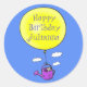 Cute mouse in watering can with balloon cartoon classic round sticker