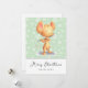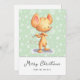 Cute personalised Christmas card with an illustration of a sweet mouse playing the flute over a background with snowflakes. Illustrated and designed by Patricia Alvarez.