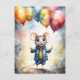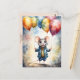 This postcard features a cute mouse with a jacket and pants, holding lots of balloons in his hands. DIgital art - watercolor. A super cute motif for children! The back is customisable - you can remove or change the colour, text and image to your liking.