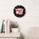 Wall Clock, 25.4 cm Round Black Wooden Frame