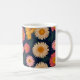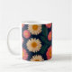 Cute Mug with Daisy Pattern on a deep blue background.